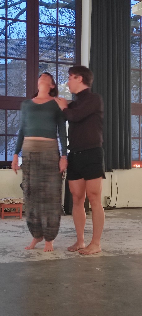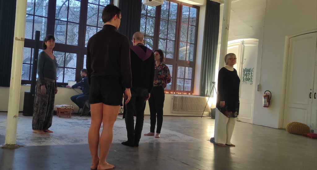 We nodigen onze deelnemers uit om voor de performance met ons te praten rond de tafel. We maken kennis en geven informatie over het dansritueel voor zij die graag met enkele handvaten onze cirkel betreden. Wie graag mee fysiek opwarmt met de performers, kan iets vroeger komen. We vragen daarom om voor de performance contact op te nemen met ons, opdat we alle participanten zo goed mogelijk zouden kunnen begeleiden. Na de performance houden we een praatcirkel waar ervaringen van de performance gedeeld kunnen worden en waar een open gesprek kan plaatsvinden op basis van het thema van de voorstelling. Deelnemen is vrijblijvend en je kan er ook voor kiezen om het geheel vanop afstand te volgen (en buiten te gaan wanneer nodig).