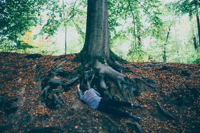 The excessive bodily phenomena, described by Beatrice in her fifth manner and accompanying the ecstatic experience of Love, are projected on Mother Nature’s body. The roots represent the veins which are about to be broken. The dancers’ bodies flash between Nature’s scars, finding love andrepetitively losing it. The images flash by on the vast speed of a beating heart, causing glimpses of ecstasis within the viewer. It is these moments of ecstatic rapture that make us feel alive;these moments of excessive Love keep the heart beating. However, dark tones were kept in the video to accentuate the darkness found within the text and to counter the romantic expectations of the viewer. After all, Love seems to escape our grasp and the threat of loneliness remains. Like Beatrice, the video artist plays with this friction between expectation and his rough visual language to deconstruct harmony and conjure rapture.