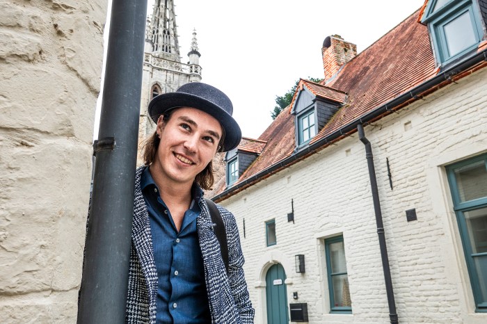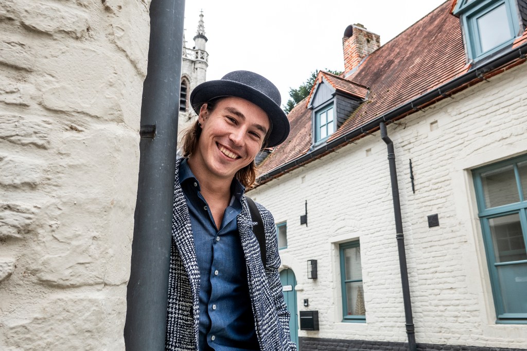 In het voorjaar werkte hij een doctoraat af over pijn in de dertiende-eeuwse mystieke cultuur in Luik, maar Sander Vloebergs (29) plant het onderzoeken niet af te leren. Met één been bewandelt hij een klassiek academisch pad, met het andere tast hij naar iets nieuws, een theologie die zich artistiek en lichamelijk uitdrukt.