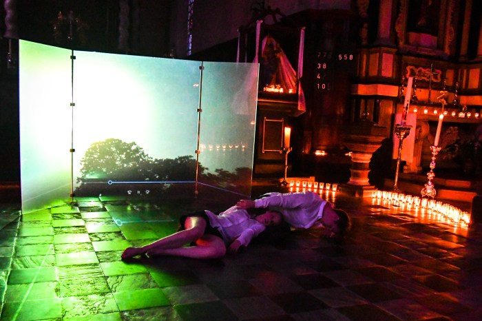 LUTGARD-IS. The Veil 1. Procession 2. Let there be Light 3. Dionysos – Eros 4. Pieta – Thanatos 5. Circle Performance + Lecture @ Sint-Pieterskerk Langsdorp, 15th of August – with Linde Stiers